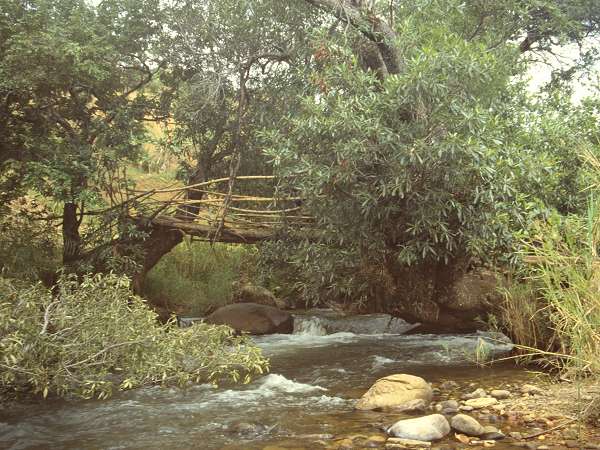 A home-made bridge in Malawi.