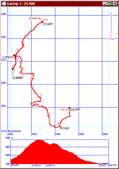 Example of track, some waypoints and an altitude trace. To see the same trace superimposed on a map, click here.