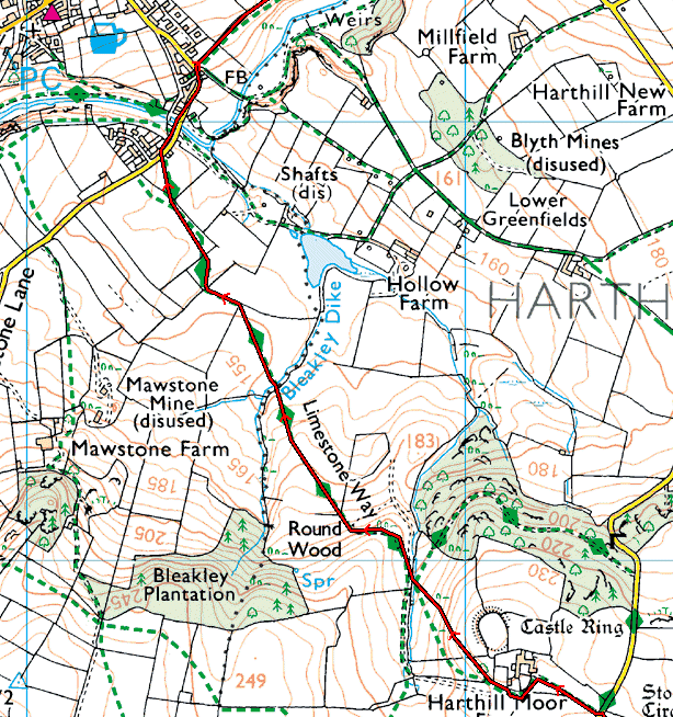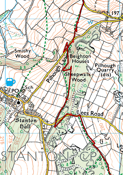 Back on the half-sunken path beside Birchover church the results are slightly erratic on the part-wooded hillside but quite acceptable.