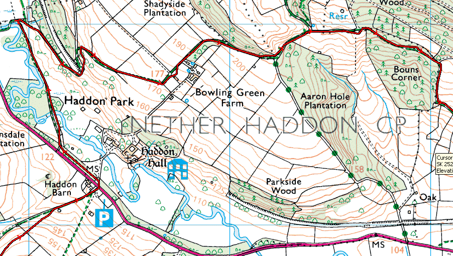 The biggest error is around the disused railway cutting to the North of the Haddon Park label. Error is quite small.